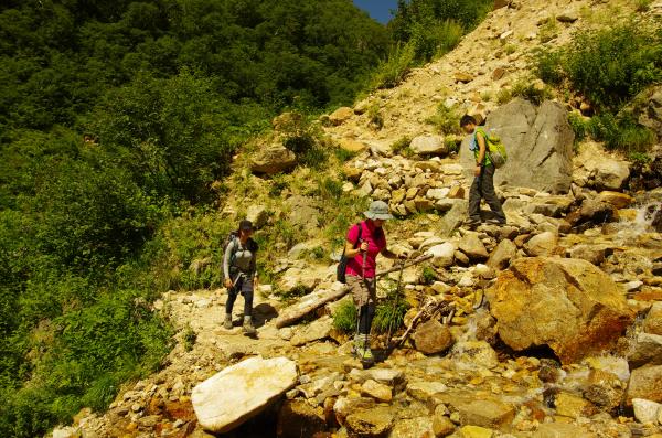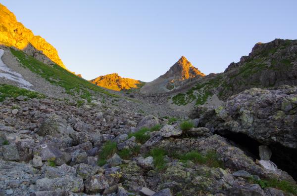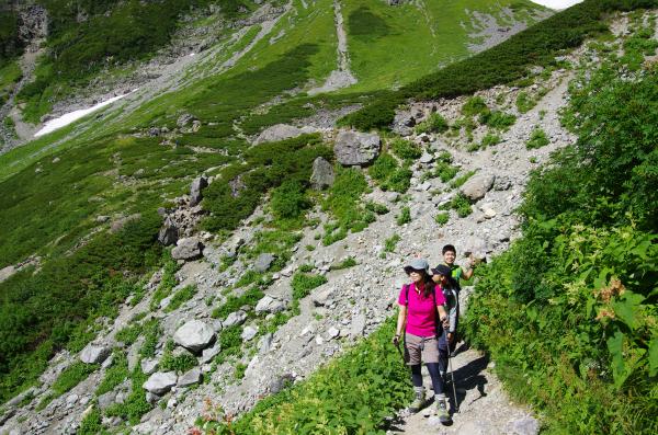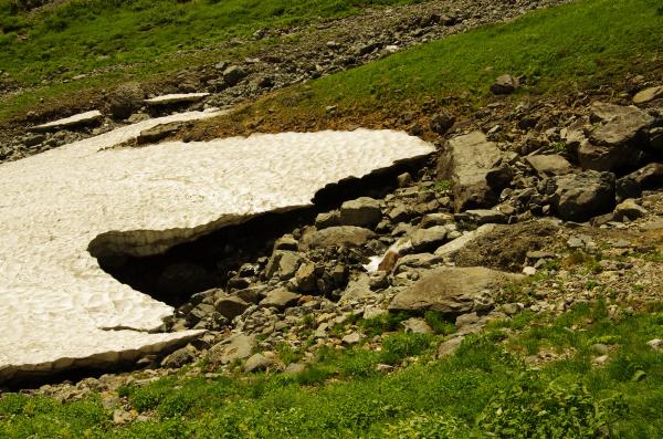 - 雪渓は溶けているため、アイゼンは不要でした。道もよく、目立って危険な場所もありません。