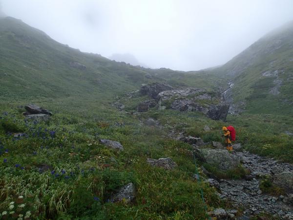 3日目も濃い霧の中スタート。今回の核心である不帰の手前ではじめての青空。不帰は鎖も岩もしっかりしていて危なく感じるところはありませんでした。さすが北アルプス!でも事故が多いのも事実なので気を引き締めて進みましょう。