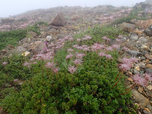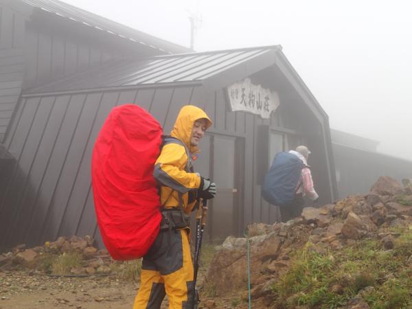 2日目も少し歩くと小雨となり、しだいに風も強くなってきて天狗山荘で様子を見るも一向に回復することなく停滞決定!花の名所なだけに昼間からバカ話に花が咲きます。そして二人はテントを設営し、私は理由あってしぶしぶ小屋へ。小屋の晩御飯をいただいている間もテント泊二人のことが気になって・・・鍋がうまいっ!といつの間にか二人のことを忘れていました。仲間のことも忘れさせる魔性のディナーですねぇ!その後も二人のことは思い出さずに熟睡できたことは言わずもがな。なんかとても良い夢を見ました♪(^○^)zzz