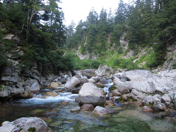 薬師沢小屋からは一時間ほど黒部川を遡り