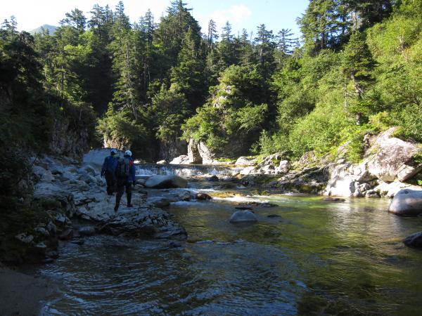 - 藥師沢小屋から赤木沢出合までは数箇所右岸を高巻きしながら進みましたが