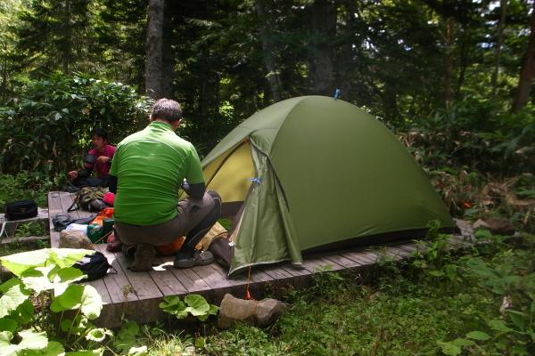 キャンプ場もウッドデッキで快適。ですが、ねずみには要注意。テントにゴミを入れてても、テントをかじってやってきますので、ゴミの保管場所には気をつけてください。