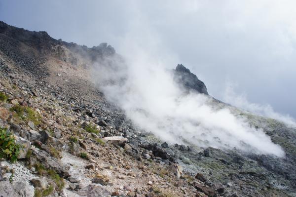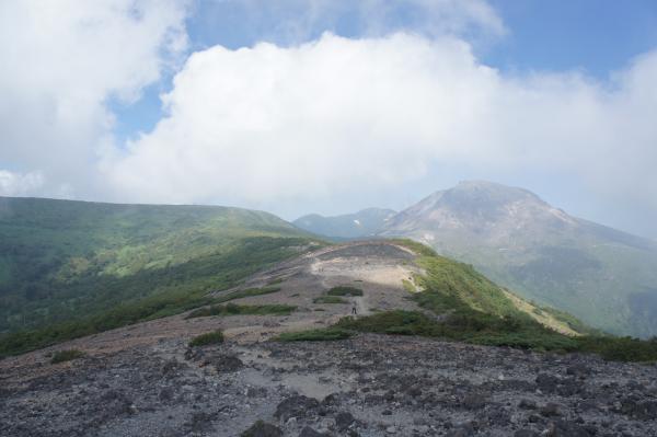 このまま茶臼岳や朝日岳にも行っちゃいましょうっ♪・・・と思っていたのですが背後から黒い雲が黙々と・・・