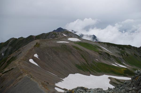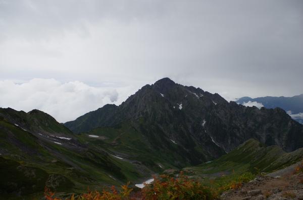 雷鳥沢を登るか立山三山経由で行くか迷いましたが、時間もあるしたまには立山も行かないとと思い縦走することにしました。小雨でしたが時折雲の切れ間から薬師岳方面が見えたりしてチョット得した気分に慣れました。