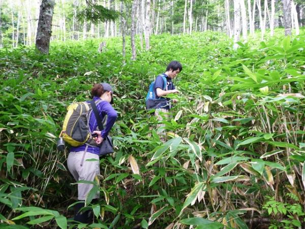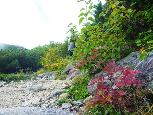 信州大学農学部付属西駒演習林内を通る、通称信大ルート。急登ですが一般道より早く稜線に上がることができるので、時々登山客にも利用されているようです。登山道付近に設置されている様々な計測機器が大学演習林の雰囲気を感じさせます。