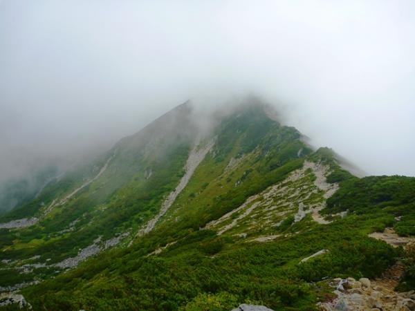 長い登りを終えて2600mの稜線に立つと目指す西駒ヶ岳が目の前に現れます。