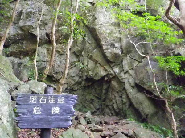 登山道が岩壁の下を通っているところもあり、落石注意です。