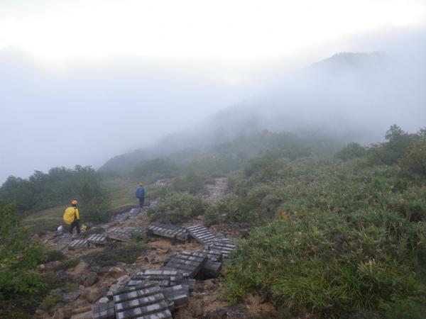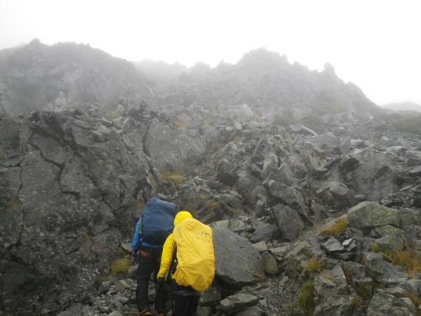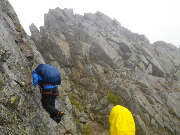 小雨の中、ぬれた岩稜帯を歩くことになりました。