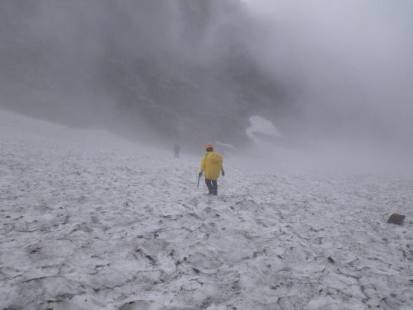 雪渓は柔らかかったので、アイゼンはなしで、ピッケルだけ持って歩きました。