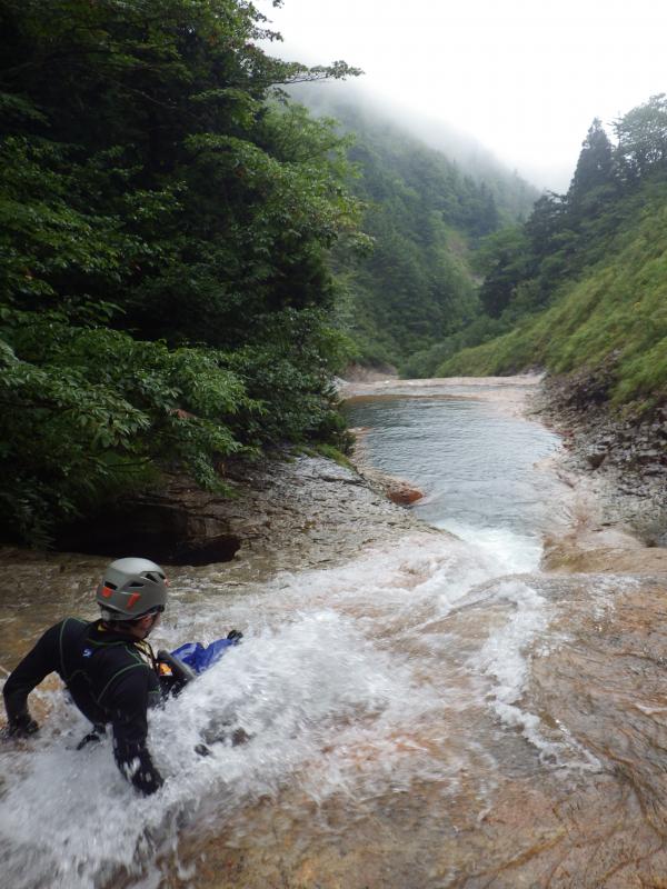 一つ目の滝を登るとさっそく待っていました!明るいナメが登場☆晴れていたらもっと明るくてキレイなんだろうな~と思いつつも気分はルンルン♪足元ではパシャパシャと水を跳ねて遊んでみたり。