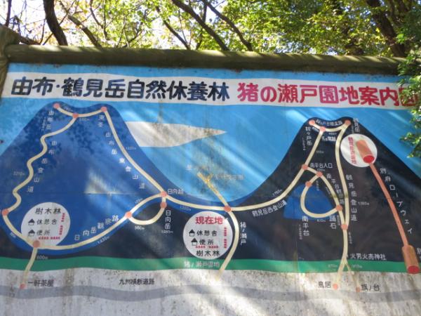 - 由布岳登山口(25分)合野越(50分)マタエ(15分)由布岳西峰(20分)由布岳東峰(80分)東登山口(60分)馬の背(15分)鶴見岳(45分)鞍ヶ戸(20分)船底(20分)内山(150分)大平山(扇山)(40分)大平山登山口(15分)向井病院前バス停 *歩行時間のみ