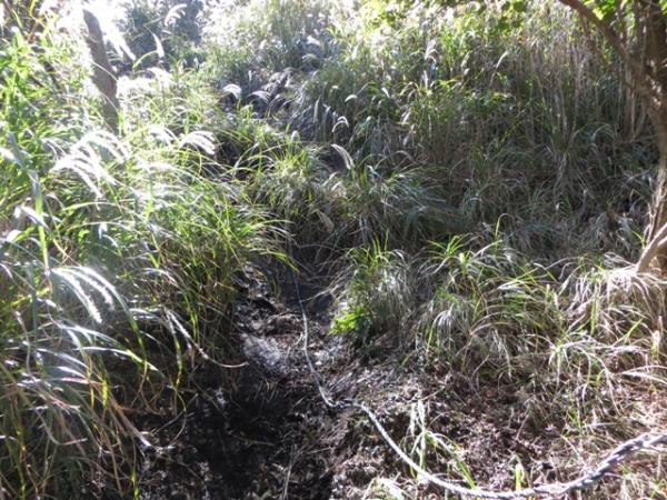 ●鞍ヶ戸~船底~内山・・・鞍ヶ戸から船底へは急下降。ススキの下には黒い粘度質の土が隠れていました。ロープがありますが、かなり滑ります。船底から内山への上りも同様ですが、南向きのルートで道は乾いていました。内山の山頂付近は、背丈以上のススキに覆われ踏跡が不明瞭です。