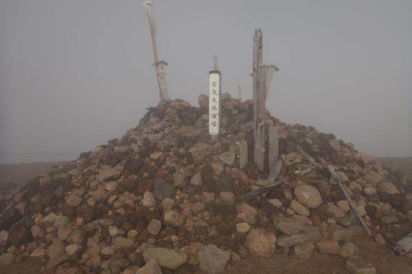 一切経山の次は東吾妻山を目指します。登ってきた道を下りてくると、突然霧が晴れ浄土平の大湿原が見渡せました。避難小屋まで戻ると木道歩きになり、途中綺麗な鎌沼のほとりを歩いていくと東吾妻山登山口に着きます。30分程石の多い樹林帯を登ると突然景色が開け東吾妻山山頂に着きました。山頂はなだらかでとても広く、360度東北の山々が見渡せるのでお昼休憩におススメです。