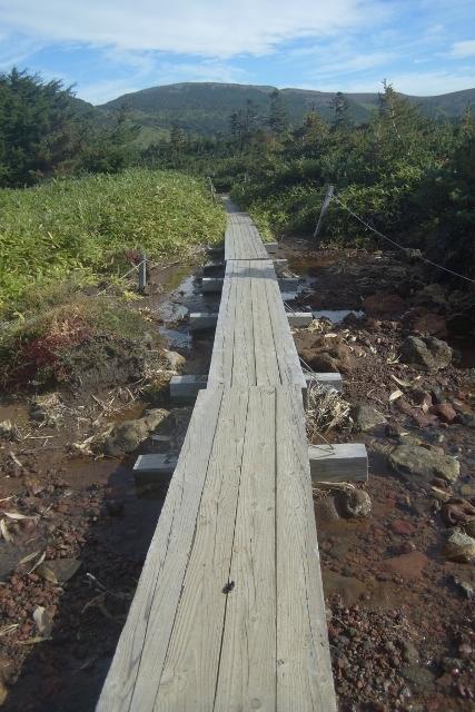 - 木道と大きな石が多い道の連続になります。雨の降った後などは登山道が濡れた沢道になりますので防水のトレッキングシューズがお勧めです。