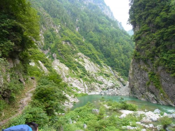 人は少なく、ロープをつかみながら登る箇所もあり、テント泊装備を背負っていると中々ハードでしたが、黒部ダムの観光放水を下から見られたり、途中湧き水を飲める箇所もあり楽しめました。