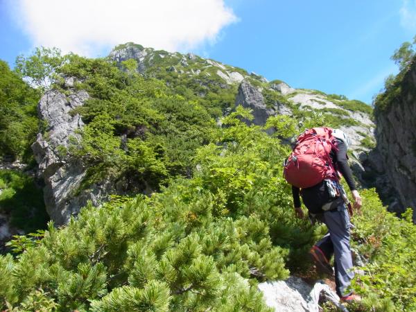 クライミングというよりは木や草を掴んでよじ上る体力勝負ルートといった印象。