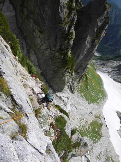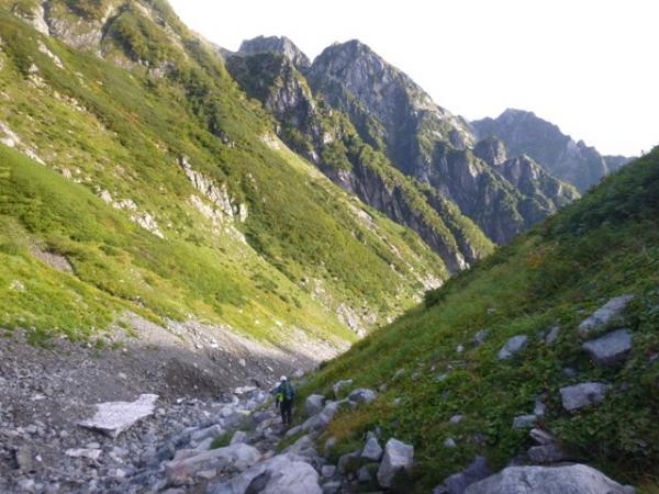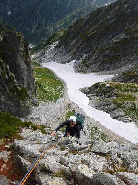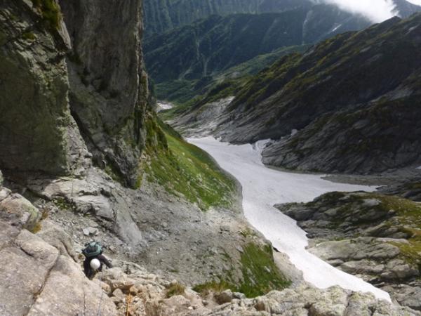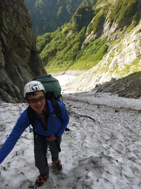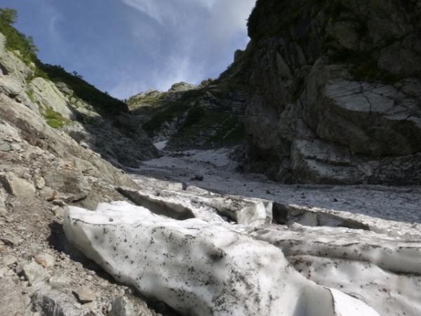 アプローチの長次郎谷は雪渓がめちゃくちゃなので、
