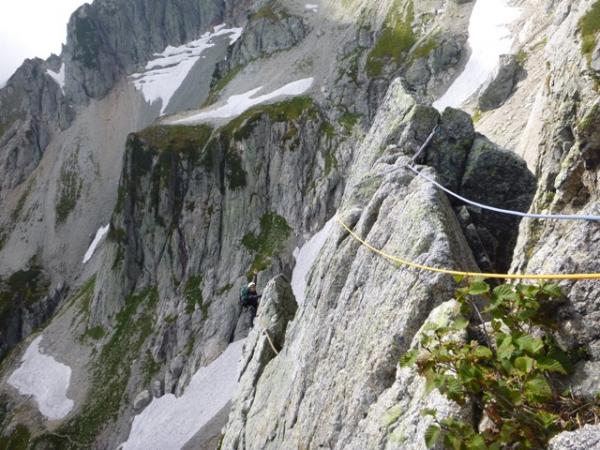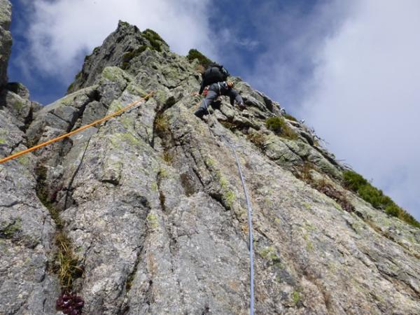 かなりの高度感ながら、手ごろなグレードの硬い岩。