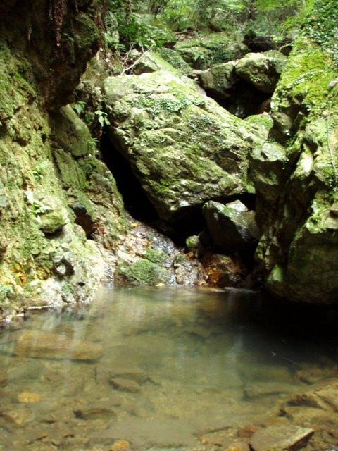 全体的に薄暗い谷で、水量はかなり少なめでした…。