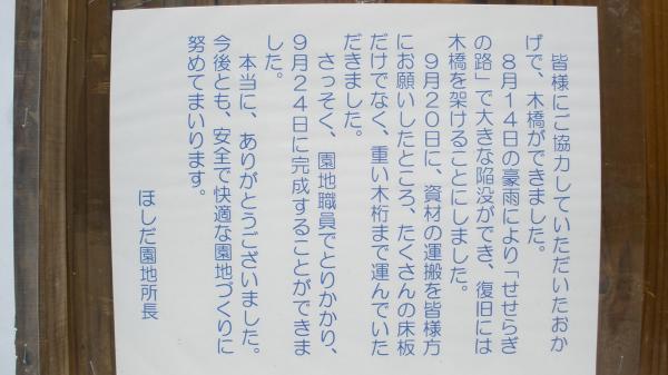 - 平成24年8月14日の大雨被害により、通行止の道があったり、仮歩道があったりもします。