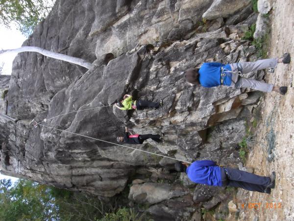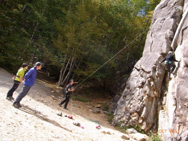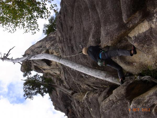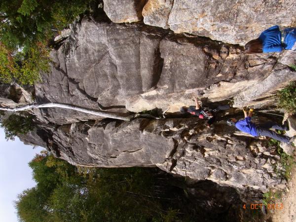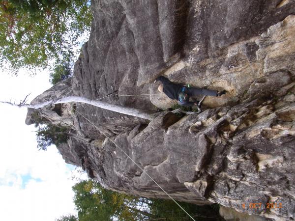 久しぶりの外岩クライミングで最初は高度感に腰がひけましたが、ほどよいルートと天気で、気持ちのよいクライミングを楽しめました。