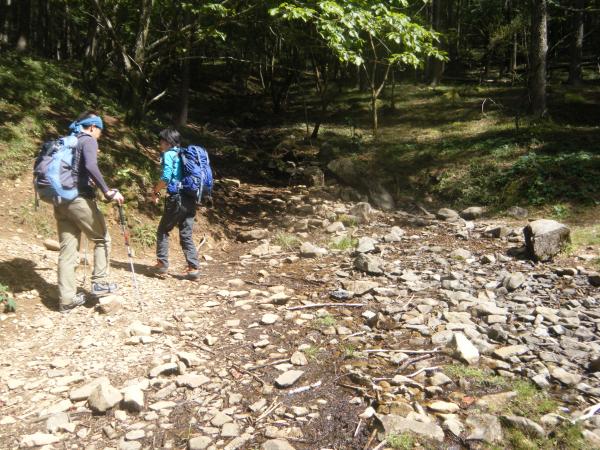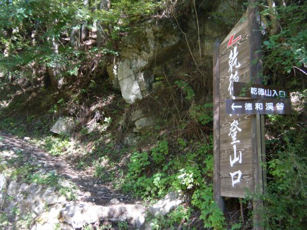 - 乾徳山登山口バス停⇒(30分)登山口⇒(50分)錦晶水の水場⇒(50分)扇平⇒(70分)乾徳山頂⇒(120分)道満尾根経由・下山口