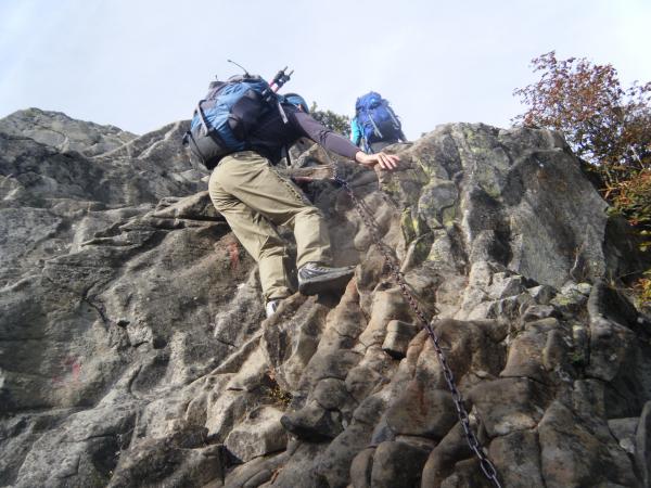 山頂付近のみ岩道になっており、鎖場などが数カ所出てきますので、滑落事故に注意です。