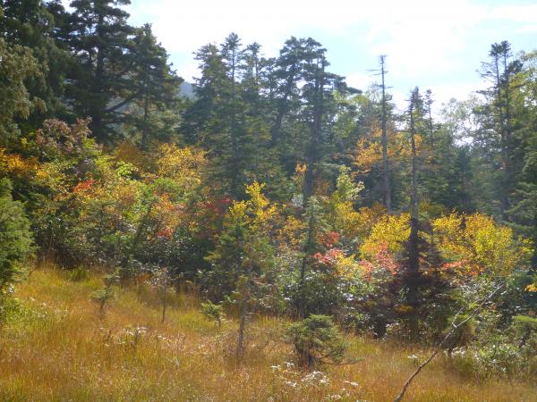 今年は暑さが続いたせいかまだピークの手前といった感じでした。そういえば小屋のご主人も、今の時期例年なら氷が張るが今年はまだだ、と言っていました。