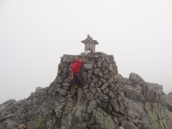 3日目は霧の中、天候が悪く奥穂高岳、前穂高岳山頂では景色が見れず残念でした。