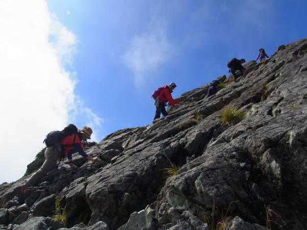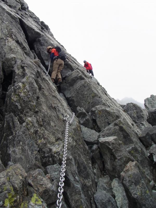 危険で有名なカニのたてばい、よこばい、平蔵の頭!!鎖場やはしごが多く、慎重にいかないと滑落につながるルートです。鎖は非常に綺麗で安心して握ることができます。たまに、足場を確保してあるところもあるので、安心して登れますが、かなり高度差があるので落ち着いて下を見ないようにして登ることをオススメします。
