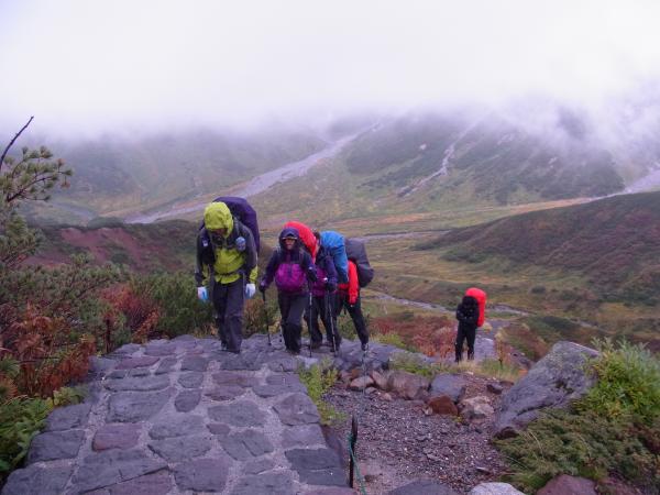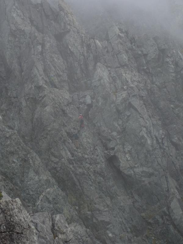 3日間の行程のうち、アタック日以外は雨だったので少しルートが滑ったり視界が悪くレインウェアを1日中着続ける最悪なコンディションでした。噂とおり剱岳は危険なルートが多く、事故も多発しているので慎重に登りました。ただ、ずっと危険なルートということではなく、鎖場やはしごも新しく頑丈で、しっかり掴んで足場を確保しながら進めば、鎖場になれてない方でも登れます。今回の山行にはあまり登山をしない人も参加していましたが、頑張って登っていました。高度差があるので、一段と鎖場が怖く感じる人もいるかもしれません。