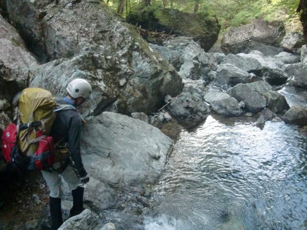 東ノ川は大岩がごろごろしていて、ルートファインディングが難しく、登攀、特にボルダリングの力が必要だと感じました。