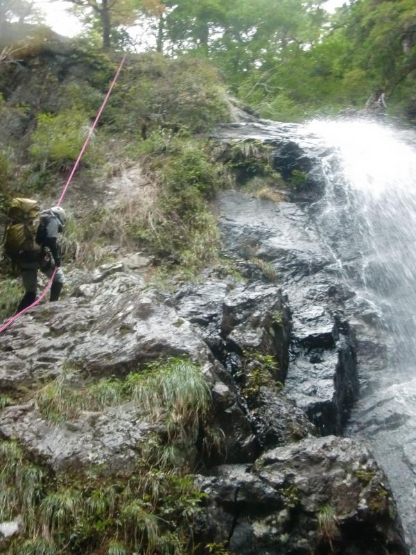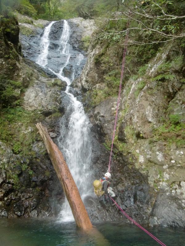 - 白崩谷から下降して東ノ川へ入渓しましたが、白崩谷自体も大きな沢で大滝を巻いたり懸垂下降したりと大変です。
