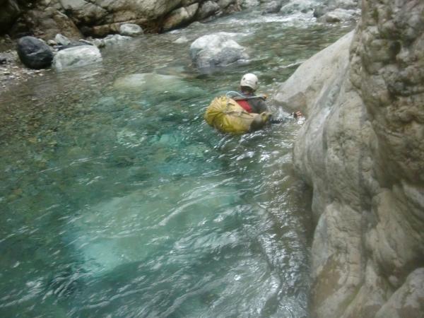 初日から沢靴を履くことになるとは思っていませんでした。白崩谷自体も大滝あり、ゴルジュあり、覆水の河原歩きあり、の面白い沢です。