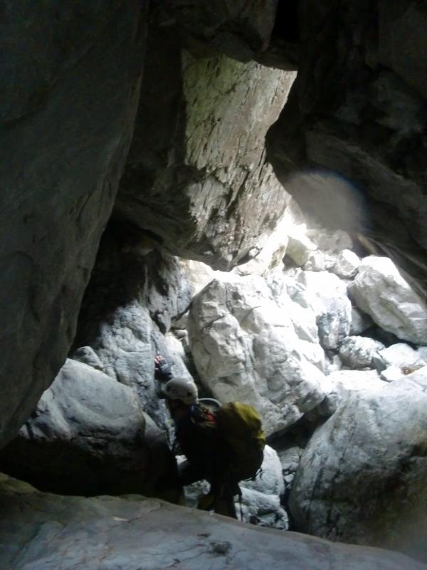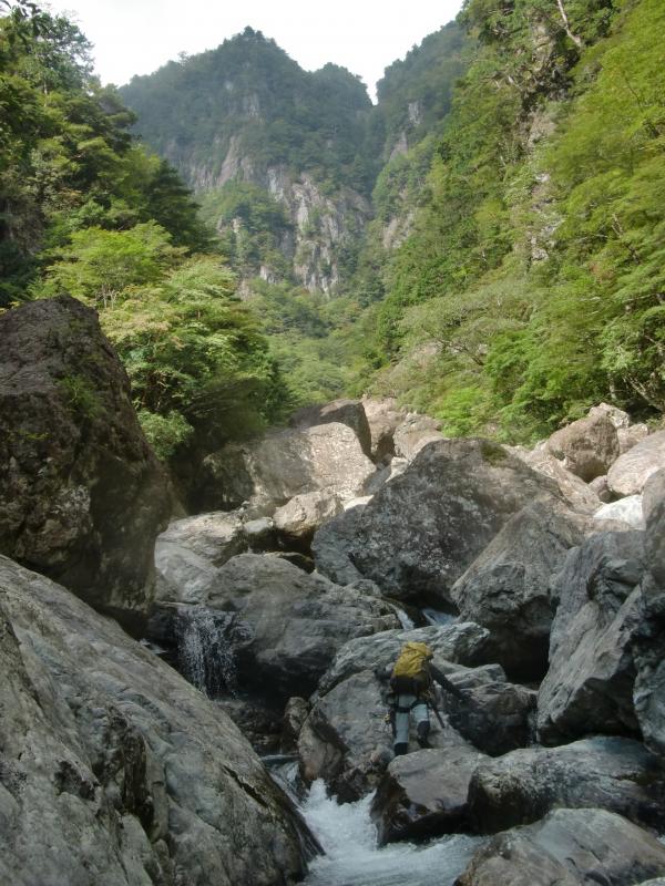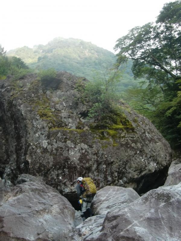 二日目にようやく東ノ川の遡行開始ですが、あまりにも岩が大きすぎて見通しが利かず、何度も戻ったり、無理やりボルダで岩を乗り越えたりの連続です。