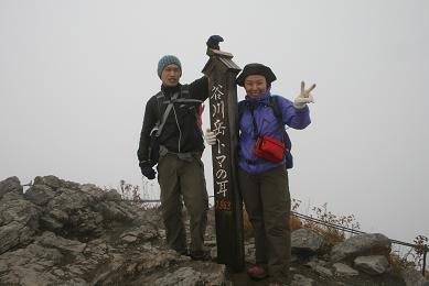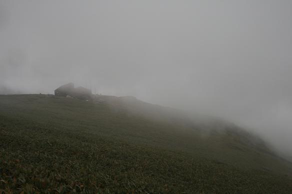 山頂では視界ゼロ、しかも寒い・・・ご飯を食べて直ぐに下山
