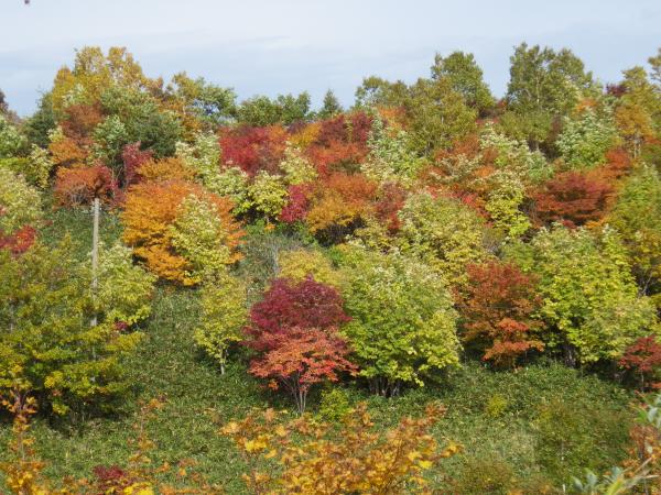 八幡平アスピーテラインをくねくねと上がった頂上にあるバス停が登山口。その道中だけでも大いに鮮やかな紅葉が楽しめる(*^ω^*)