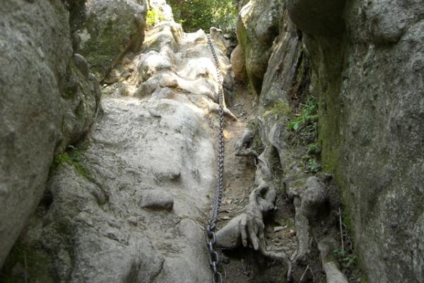 英彦山の奉幣殿から中岳への道は、石段が多く歩幅が大きくなるため、