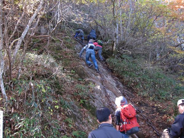 鎖場は3ヶ所(試し・一の鎖・二の鎖)三の鎖は工事中でした。
