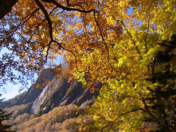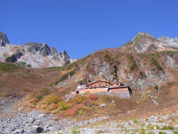 涸沢ヒュッテは、冬支度がはじまっていました。パノラマコースで徳沢まで下山。パノラマコースは、途中、危険な場所もあるので、注意が必要です。屏風の耳からの景色は、穂高連峰~槍ヶ岳まで一望でき、絶景です。