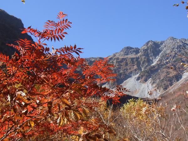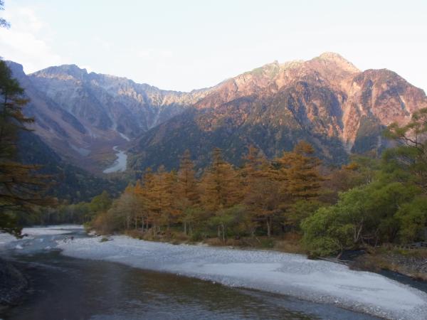 上高地から徳沢へ、紅葉も見ごろは終わりをむかえていました。