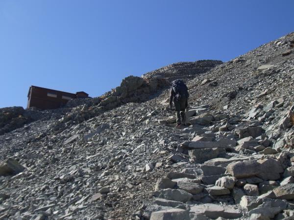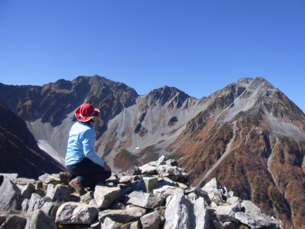 山荘までは、ぽかぽか陽気でした。山荘で荷物を減らして、奥穂高岳へ。山荘から急に、気温が下がり、風もきつくなりました。この日は、登山道に凍結もなく、快晴の山頂、景色を堪能しました。