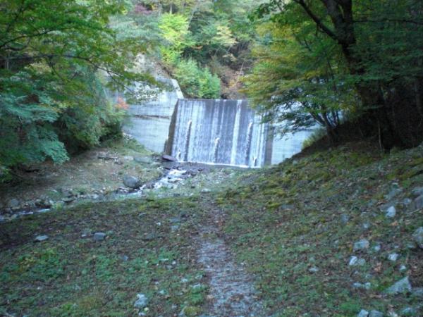 樹林帯を進むこと1時間ほどで、小休止におススメの開けた堰堤が現れます。小さな橋が架けられていますが、増水時には注意が必要です。