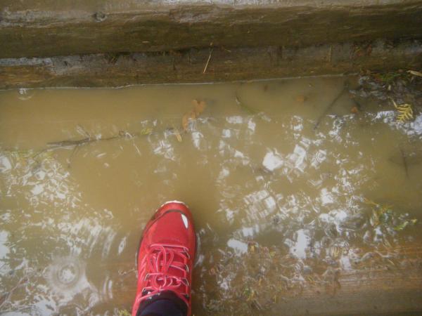 しかし、この日はあいにくの雨模様。雨の影響で途中ぬかるんだところもあり2回も転倒してしまいました。路面が乾いていれば何てことない道なのですが、やはり状況は変化すると大変だということを身をもって体験したようでした(苦笑)。