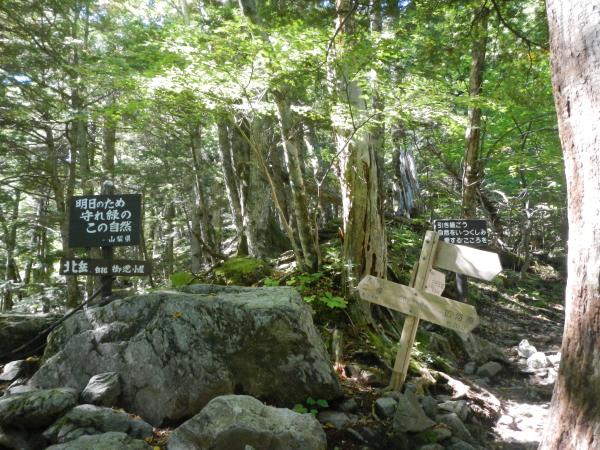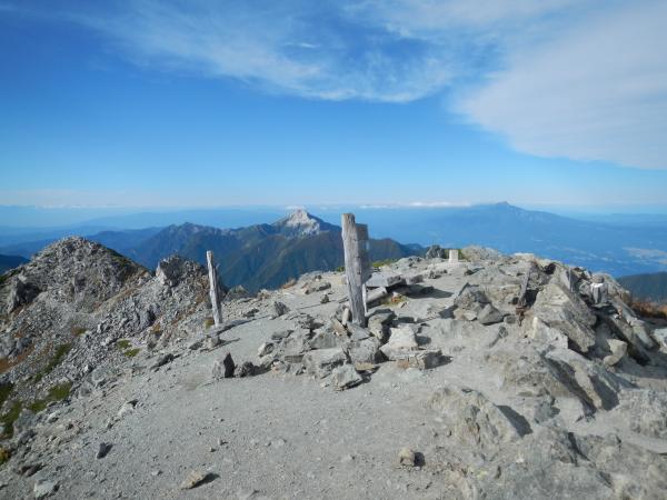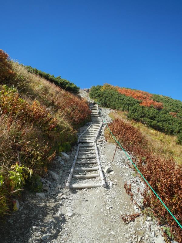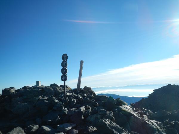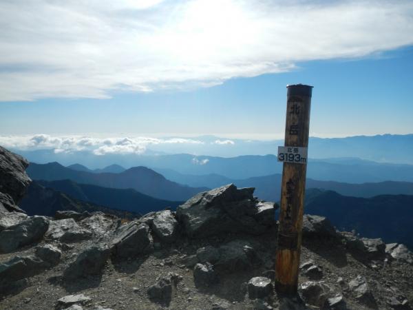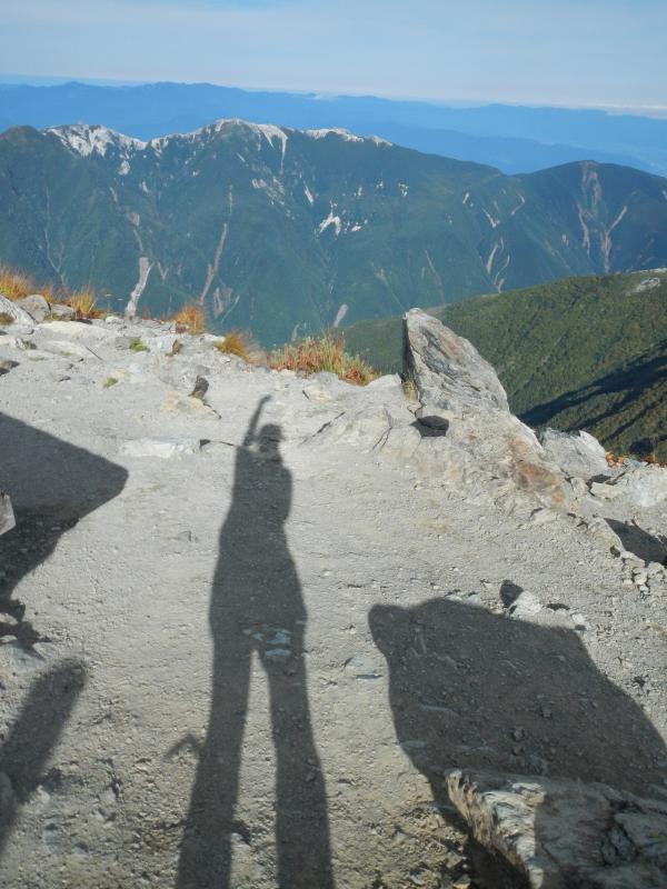 計画の時点では、農鳥岳まで登って奈良田温泉に降りる計画を立てていましたが、途中でさみしくなってしまったことと、北岳山荘のスタッフの方に、この時期は熊がでますし、女の人独りで奈良田に下るのは心配・・・と言われて、急きょ次の日は空身で間ノ岳に登り、広河原に下ることになりました。
