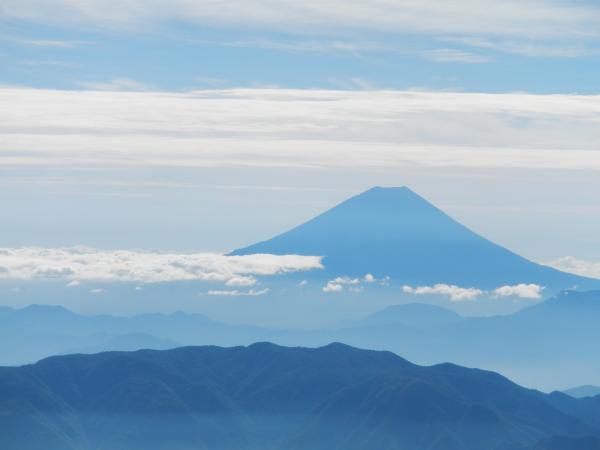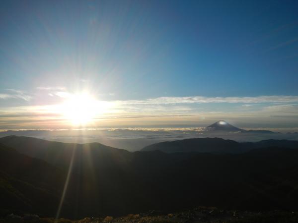 初めての一人テント泊登山で意気揚々と出発しました。天気にもすごく恵まれ、自分のペースでゆっくり登ることができました。北岳山荘のテント場では、テントを開けると富士山が目の前で、独り占めをすることが出来ました。