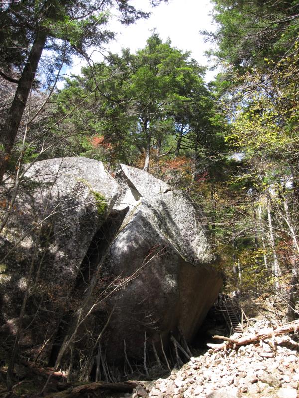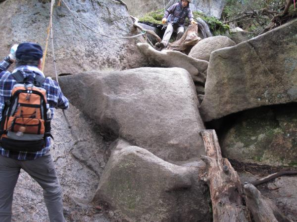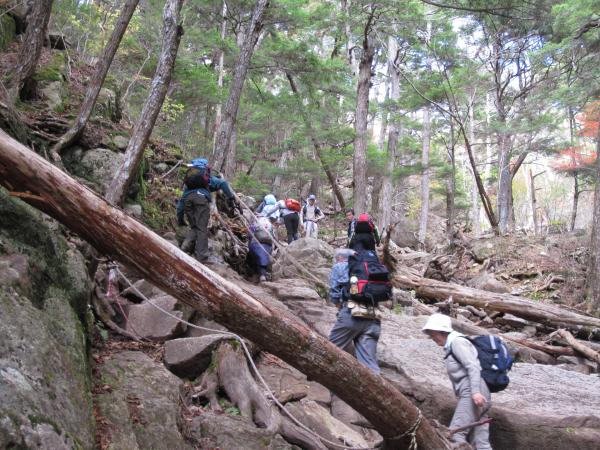 天鳥川を越え急な岩場が続くと、突然左に大ヤスリ岩が現れます。急な岩場も足を滑らせないように気を付けて登ればとても楽しいです!苦手な方はゆっくり慎重に三点確保を意識して登って下さい。手袋があったほうが良いでしょう。