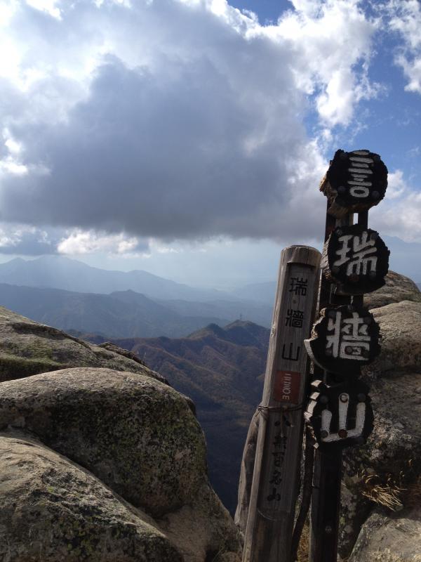 秋晴れの清々しい日に、日本百名山の瑞牆山に登ってきました。多くの奇岩巨石がごろごろする容貌がいかつい山です。