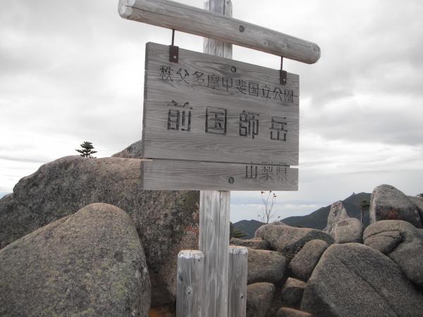 3日目、金峰山を越え、下山です。あいにくの雨模様で眺望は効きませんでしたが、時折ガスの切れ目に紅葉の山々が見えました。晴れていれば360°の展望が楽しめる金峰山山頂でもガスガス。五丈岩の大きさに圧倒されました。そしてついに瑞垣山荘に到着。増富の湯にて汗を流し、月見そばを堪能しました。