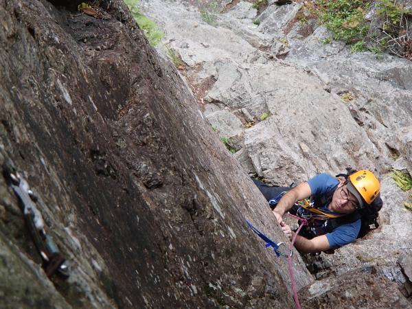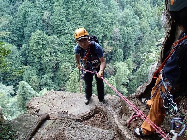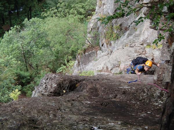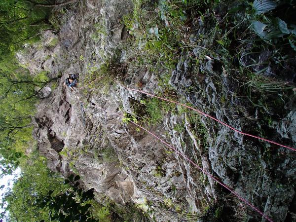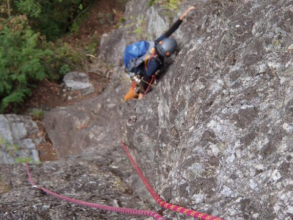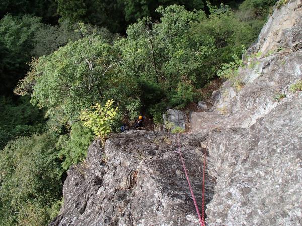 今回は右ルート(通称一般ルート)。岩もしっかりしており、ビレー点も整備されているので安心してビレーできます。